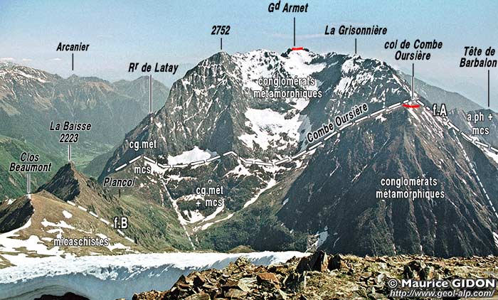 Le groupe de l'Armet s'individualise du reste du chaînon du Taillefer par les abrupts qui le limitent au nord et tombent sur la dépression transversale de Plancol - Combe Oursière. Ces abrupts ont certainement été déterminés par le jeu d'une cassure à peu près E-W, la faille de l'Armet. En effet elle a causé un surélèvement de près de 400 m. de son compartiment sud, comme en atteste le décalage de la surface de la pénéplaine anté-triasique.
