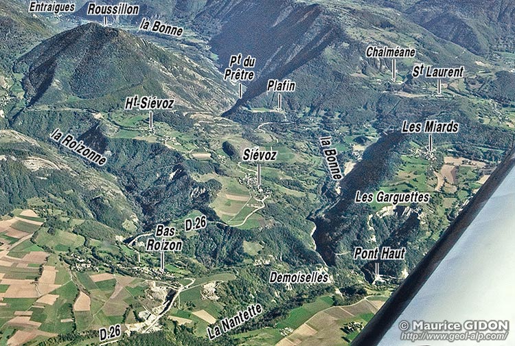 Mure et Roizon, le long du Ruisseau de la Nantette (extrait de G. MONJUVENT, 1978, fig.122, p.237, légende