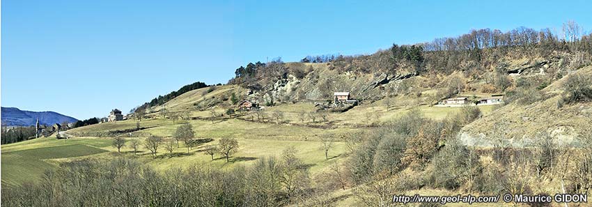 En effet, au débouché des gorges du Pont du Prêtre, le revers sud-occidental de la montagne de Roussillon s'ennoie très vite sous les diverses formations quaternaires qui se rattachent au remplissage de la cuvette de la Matheysine. Les plus hautes pentes portent, sous forme de crêtes morainiques suspendues, les traces du niveau atteint par la surface du glacier de la Bonne à son débouché dans cette dépression.