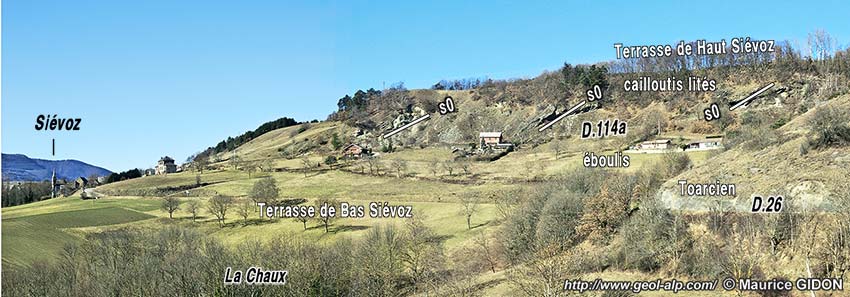 En fait ces alluvions quaternaires forment deux placages étagés aux alentours des deux villages de Siévoz :