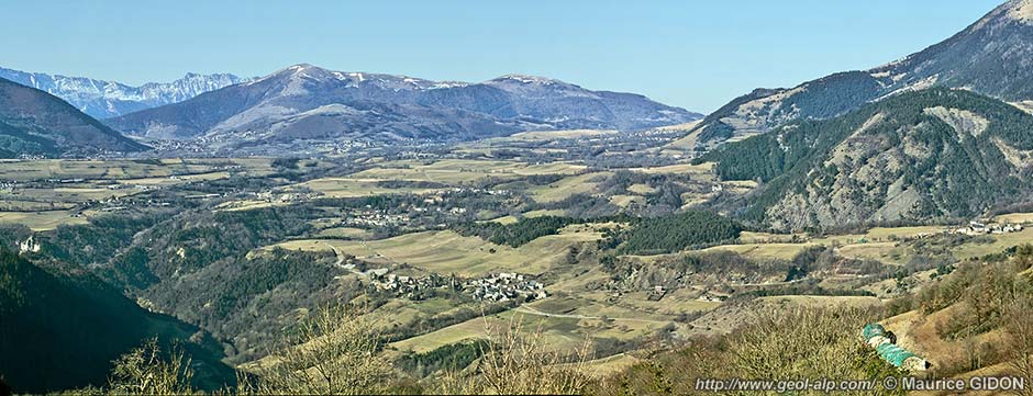 Le cours de la Bonne en amont du Pont Haut et celui du Drac en aval sont presque parallèles. Ils sont séparés par une dorsale de petites montagnes au flanc SW de laquelle la N.85 court en dominant le cours du Drac. Elle est partagée à son extrémité NW par la dépression qu'emprunte la N.85 pour descendre au Pont Haut. Ce vallonnement affecte l'aspect d'un amphithéatre ouvert vers le nord-ouest car il se ferme du côté SE par l'alignement de collines qui dessinent un fer à cheval entre le village des Miards au nord et le Serre de l'Aigle au sud. La nature de leur matériel constitutif montre que ces collines correspondent à la crête de moraine qui enfermait le berceau dans lequel l'extrémité de la langue glaciaire de la Bonne s'est engagée lors de la "récurrence" du Würm III.