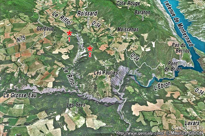 Le lit du Riffol, qui draine en contrebas de Roissard le versant de rive gauche de l'Ébron se montre tout spécialement propice à faire des observations intéressantes sur la nature des alluvions quaternaires et sur leur comportement, consécutif au creusement de ces gorges dans leur substratum (observations communiquées par Mr. François LANNES).