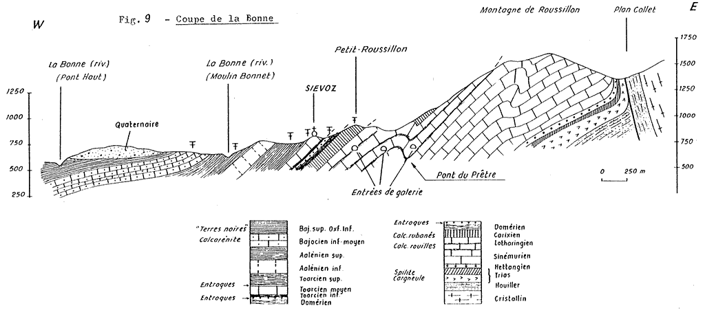Coupe le long de la vallée de la Bonne (extrait de J.C. Barféty, thèse 1985).
