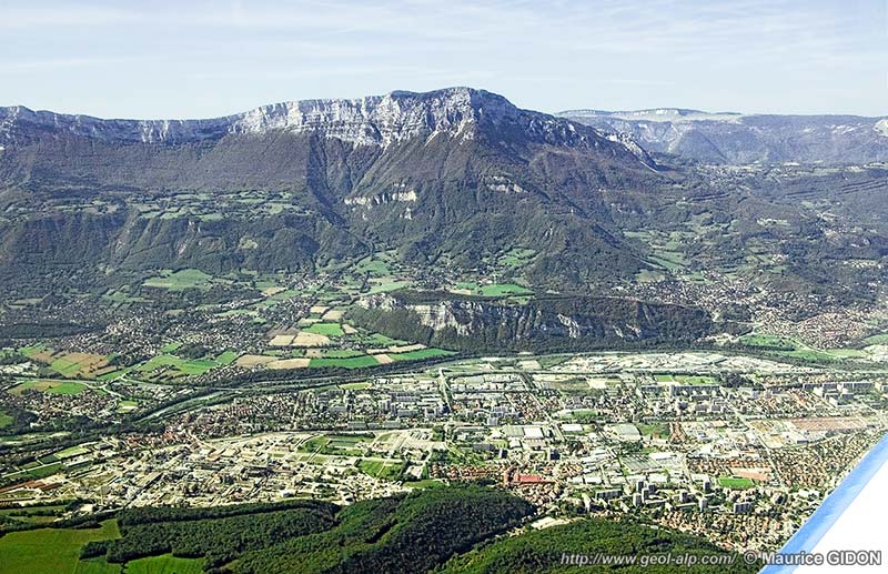 Du côté nord (voir la page "Bastille") on peut également remarquer ses analogies avec les rapports qu'entretient le chevauchement de La Bastille, modérément penté vers l'est, avec le Tithonique des quais de l'Isère, redressé à la verticale (voir la page "Rapports avec la Chartreuse").