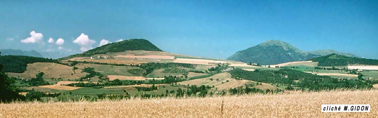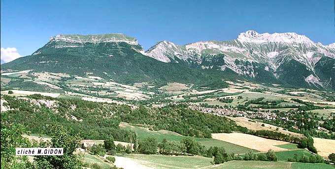 D'autre part l'anticlinal de Saint-Jean d'Hérans se prolonge vers le sud en formant les montagnes du Bochaine, entre les deux synclinaux à coeur de Tertiaire de Saint-Disdier à l'est et de Lus à l'ouest. La grande barrière des crêtes occidentales du Dévoluy, qui, de l'Obiou aux aiguilles de Lus, est constituée par le Sénonien de son flanc oriental. L'éventrement, par l'érosion de sa voûte anticlinale sénonienne a mis à nu, en Bochaine, le Jurassique supérieur et le Crétacé inférieur : ces terrains forment là le coeur de ce grand pli, mais ils y sont affectés de nombreuses complications supplémentaires. |