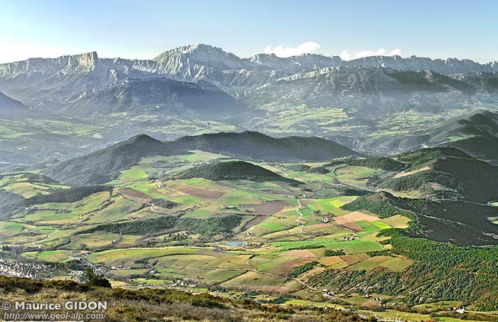 Le Trièves septentrional vu de l'ouest depuis la crête du Grand Brisou (au sud de Gresse) |