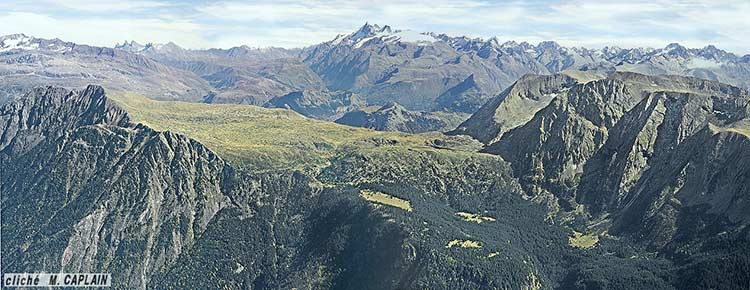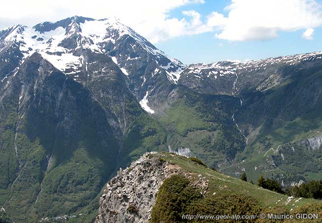 Or on retrouve la surface de cette pénéplaine, à l'état de fragments toujours presque horizontaux, 700 m plus haut, sur les crêtes du Taillefer : cela résulte à l'évidence du jeu d'une importante faille.