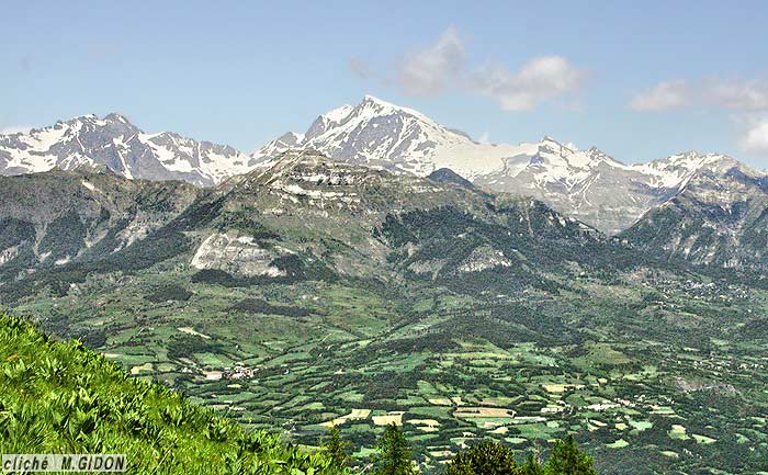 ![]() Les pentes de rive droite du Haut Champsaur, vues du sud depuis les environs du village de Manse. |
