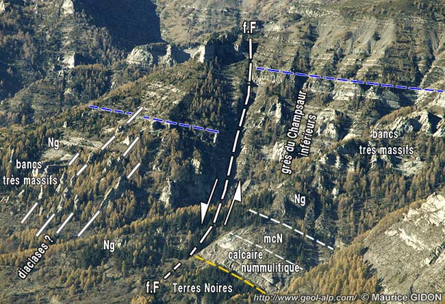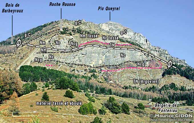 Il est à souligner que ces deux chevauchements (d'âge évidemment post-nummulitique), qui ont une vergence vers l'ouest, n'ont rien à voir avec le chevauchement du Chaillol (voir la page "Queyrel"), qui affecte seulement la succession de couches anté-nummulitique et qui a une vergence tout-à-fait différente, vers le sud.