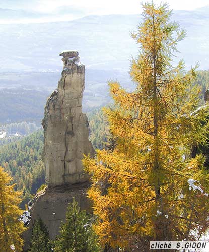 En outre les grès du Champsaur y sont, par endroits, découpés en clochetons de hauteur décamétrique. Ceux-ci sont particulièrement nombreux dans les basses pentes des abrupts de Soleil-Boeuf, où ils sont nommés les Aiguilles de Famourou.