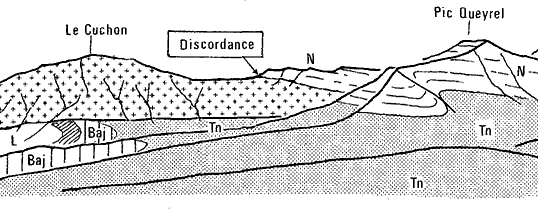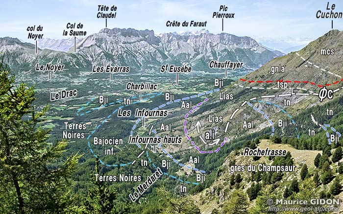 De ce fait on a donc, dans tout le secteur à l'est de Saint-Bonnet (page "Barbeyroux"), l'impression fallacieuse que le Nummulitique repose sur des termes stratigraphiques qui seraient en succession normale, simplement affectés par une importante lacune du Jurassique supérieur et du Crétacé inférieur. En fait cette lacune masque les traces de deux dislocations tectoniques, le chevauchement du Chaillol et le déversement de la bordure du cristallin du Pelvoux sur le sédimentaire du Champsaur, que cachète le Nummulitique discordant, presque non déformé.
