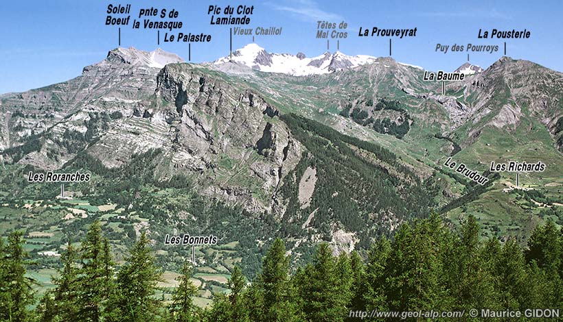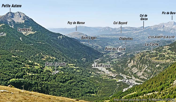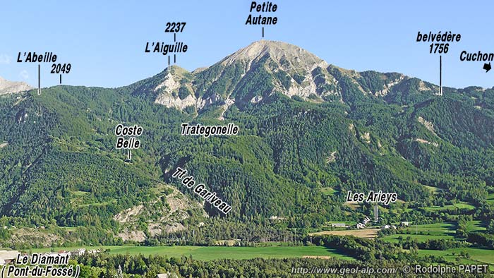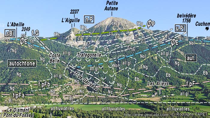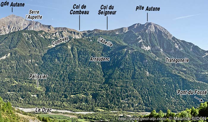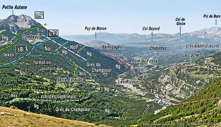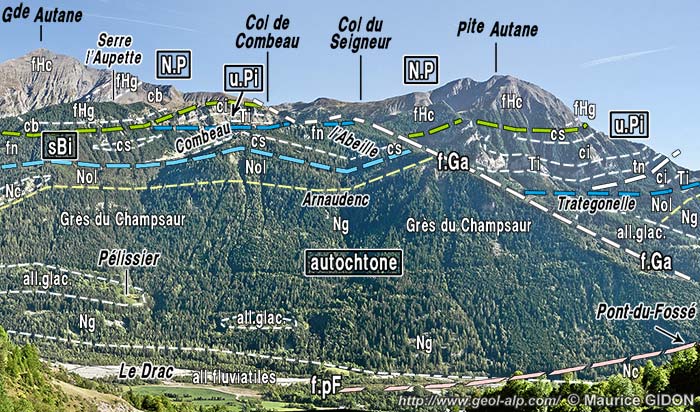 Du côté septentrional de la vallée du Drac les pentes dominant Pont-du-Fossé sont celles de la Petite Autane (voir la page "Petite Autane"). Elles se caractérisent par le fait que les terrains autochtones y disparaissent sous un empilement d'unités charriées qui appartiennent aux nappes de l'Embrunais (voir la page "Embrunais").