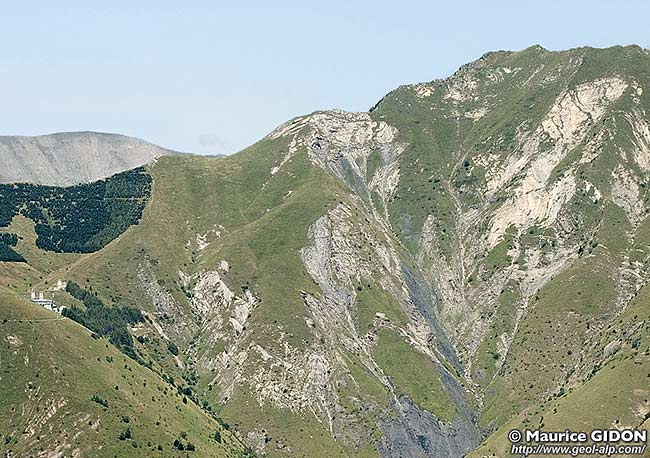 sur une surface de cassure ("faille du Chamoux") qui faisait remonter le socle cristallin (lequel affleure maintenant au revers est de