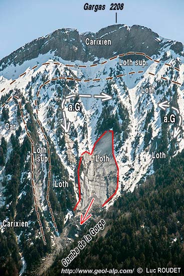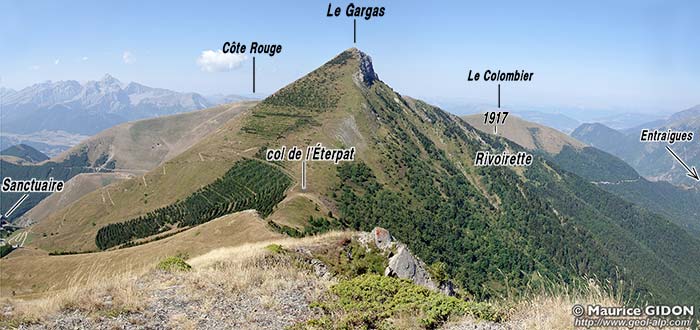 Le versant septentrional du Gargas tombe, en contrebas des abrupts sommitaux, sur les pentes boisées mais raides de rive gauche du Valjouffrey ; elles sont principalement drainées par le ravin de la Combe de la Gorge : ce dernier a été récemment (avril 2014) le site d'un important éboulement.