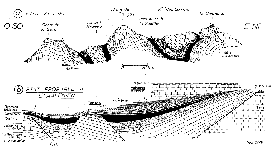 Sur le bord oriental de la coupe, au Chamoux, le Lias