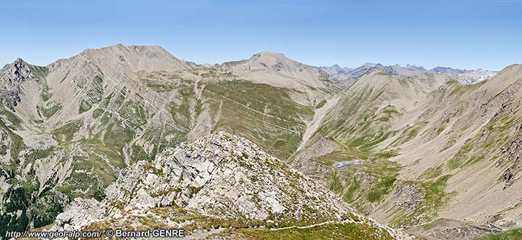 Le cours supérieur du torrent du Reyssas draine une dépression d'alpages qui est fermée du côté NW par la crête qui court depuis la Tête d'Eslucis jusqu'au Mourre Froid.