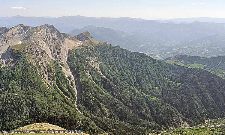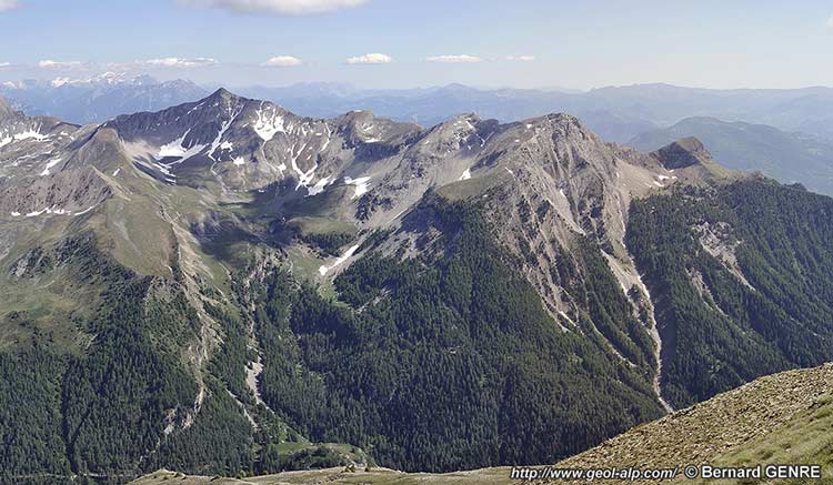 de tous ceux de l'Embrunais (avec celui, plus septentrional, des Autanes dont il est séparé par le vallon de Rouanne). Ses crêtes sont presque uniquement formées par des couches, principalement argilo-calcaires, d'âge jurassique et crétacé, que leur succession conduit à rattacher originellement à la zone subbriançonnaise sous le nom d'unité de Piolit.
