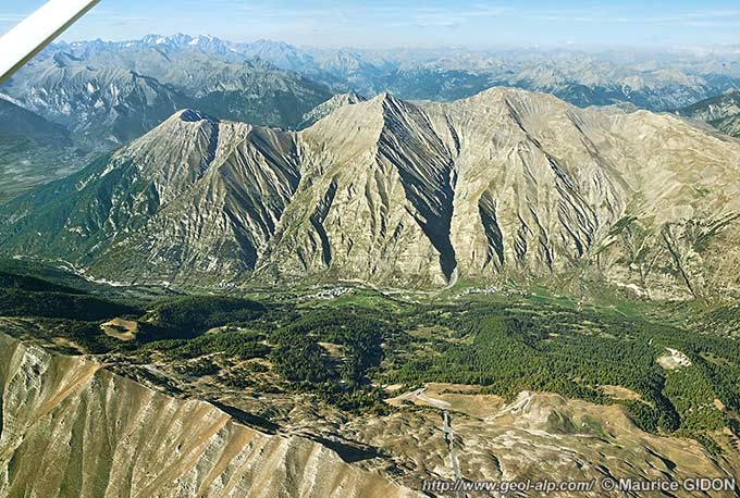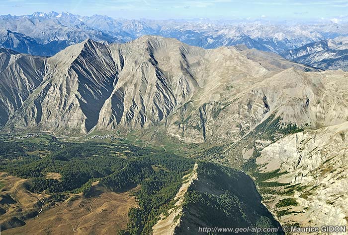 La partie supérieure des versants boisés qui dominent la vallée de la Durance est également constituée par le flysch à Helminthoïdes de la nappe du Parpaillon. À leur partie basse on voit (surtout en vive droite du débouché de la vallée de Crévoux) que cette nappe repose sur l'autochtone par l'intermédiaire d'une tranche de terrains charriés qui est épaisse ici en moyenne de 300 m et qui appartient au domaine subbriançonnais.