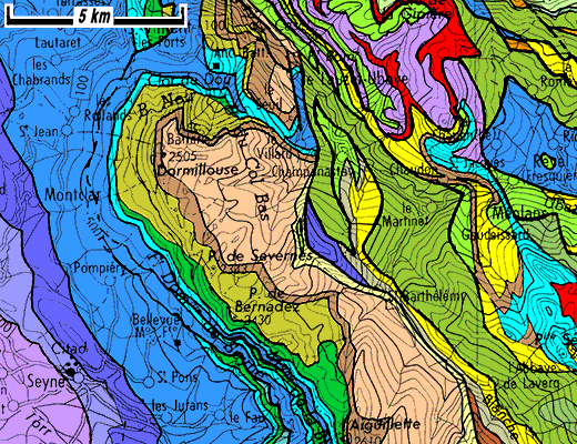 cartes géologiques au 1/50.000° à consulter : feuille Seyne.