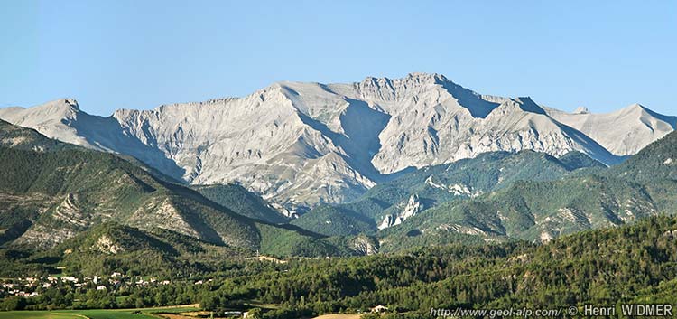Le bas versant sud-ouest de la montagne est entaillé par le système de ravins de la Galèbre et des sources de la Bléone, qui montrent le soubassement crétacé des grès d'Annot, jusqu'au niveau du Tithonique (voir la page "Prads").