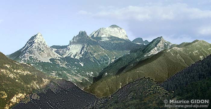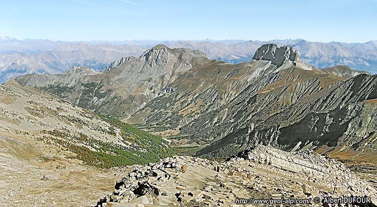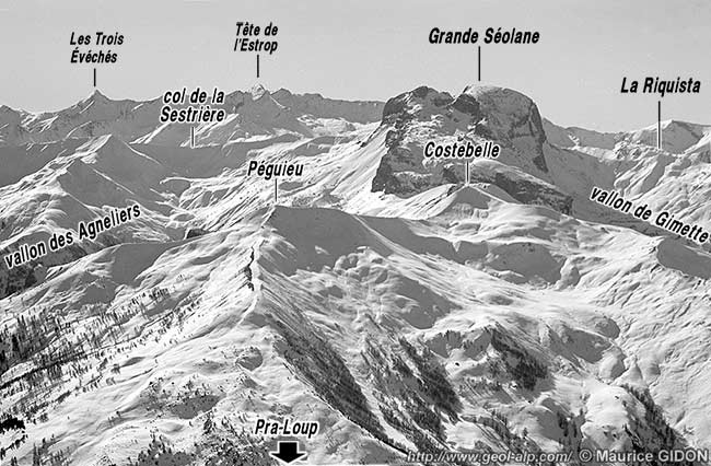 ![]() La grande Séolane, versant de Pra-Loup et de Barcelonnette, vu du nord-est d'avion |