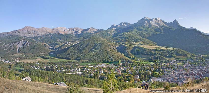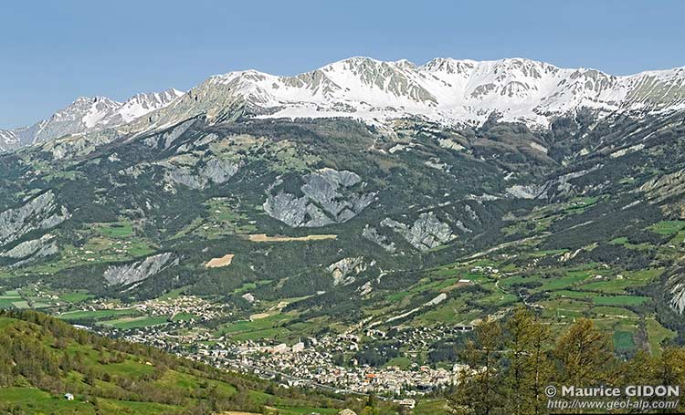 Cette ceinture montagneuse enserre de toutes parts la dépression de Barcelonnette, car elle se referme vers l'aval (Les Thuiles, La Fresquière) comme vers l'amont (Jausiers) ; elle est formée par l'empilement des nappes de l'Embrunais et principalement par la nappe de flysch à Helminthoïdes du Parpaillon.