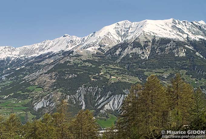 Les pentes intermédiaires, mamelonnées et crevées de place en place de ravines sauvages sont surtout installées sur les Terres Noires (marnes d'âge Jurassique supérieur), sur lequel ces nappes se sont avancées (et qui représentent donc vis à vis d'elles le terrain autochtone*).