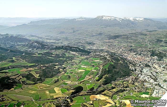 La partie nord-occidentale du Dôme de Remollon vue du sud, d'avion depuis l'aplomb de Venterol.