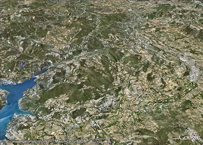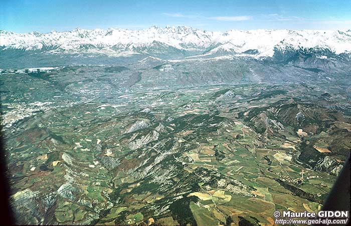 vues d'avion, du nord-est, depuis l'aplomb de Petit Larra (vallée de la Luye en amont de Gap).