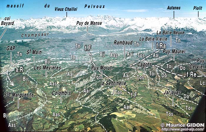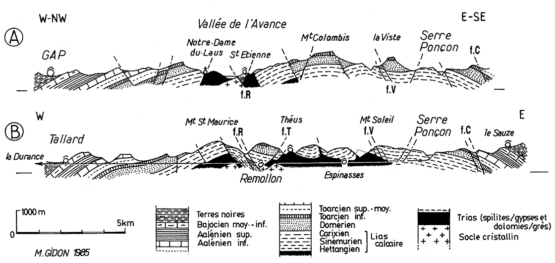 f.R = faille de Remollon ; f.T = faille de Théus ; f.V = faille de la Viste