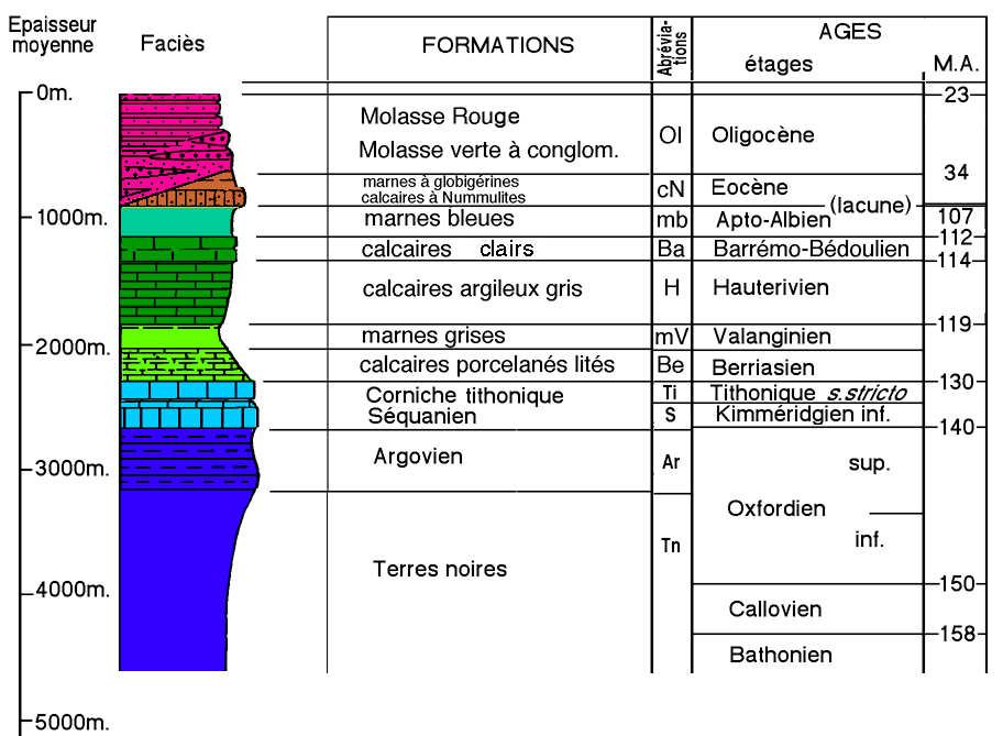 limite entre, au nord, les faciès "vocontiens", argilo-calcaires et, au sud, les faciès