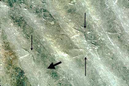 Les bancs, ici horizontaux, sont mal distincts parce que leurs