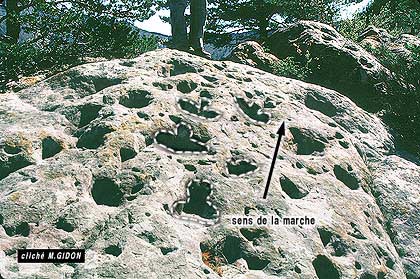 les 3 empreintes visibles sur le cliché et la flèche