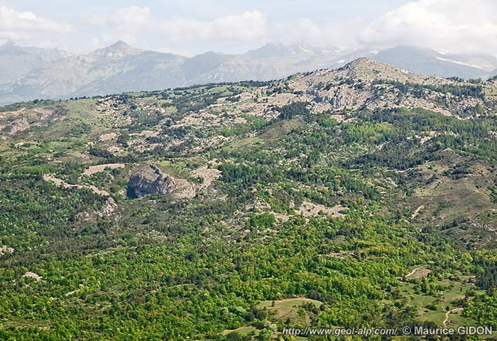 Les pentes septentrionales du sillon de Gap ont ici un caractère particulier, du fait de la présence d'un large épandage de matériaux quaternaires. Son importance est telle qu'il masque en grande partie leur substratum de Terres Noires. De plus il s'agit essentiellement d'éboulis grossiers, voire d'énormes blocs, donnant un relief chaotique qui justifie le qualificatif de "Casses de Faudo", attribué à la partie occidentale de ces pentes.