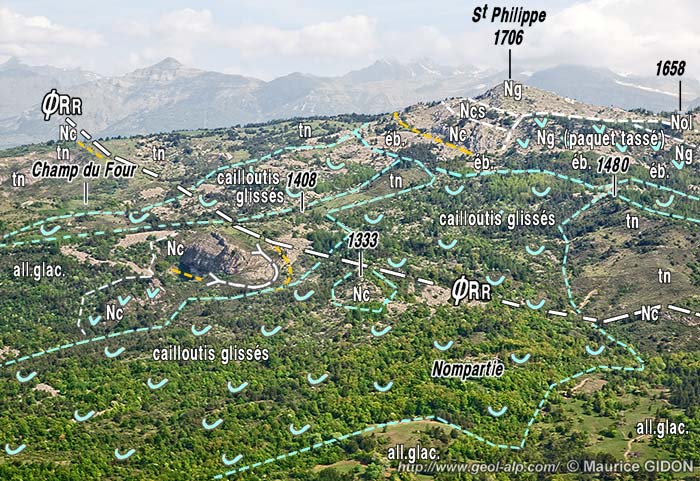L'origine de cette particularité est sans doute à rechercher dans les modalités de l'action du passage des glaciers quaternaires. Celle-ci a approfondi le sillon de Gap en affouillant les Terres Noires ; or, entre la montagne de Saint-Philippe et le col de Moissière, les couches nummulitiques qui coiffent ces Terres Noires affleurent à une altitude plus élevée que celle du niveau atteint par le glacier au maximum de son extension wurmienne : ce chapeau de calcaires et de grès a donc dû être respecté par l'érosion glaciaire et même mis en relief, sous forme d'une corniche surplombant le sillon de Gap.