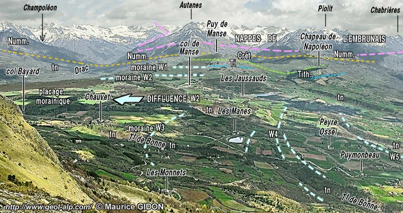 glacier durancien du maximum de Würm, en grande partie guidé vers le SW