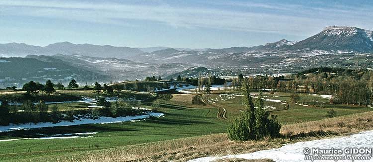 - À l'ouest le bord du seuil est plus vigoureusement marqué par le chaînon du Pic de Gleize, qui est celui le plus oriental du massif du Dévoluy.