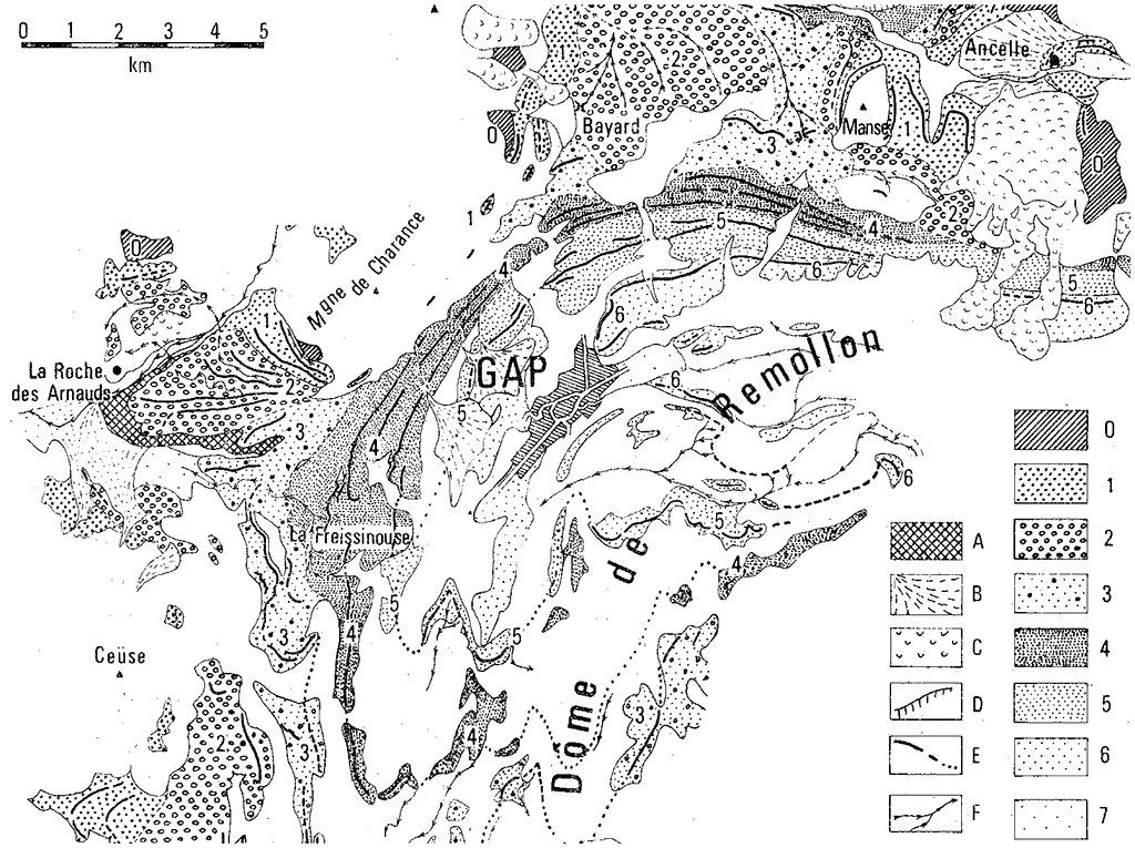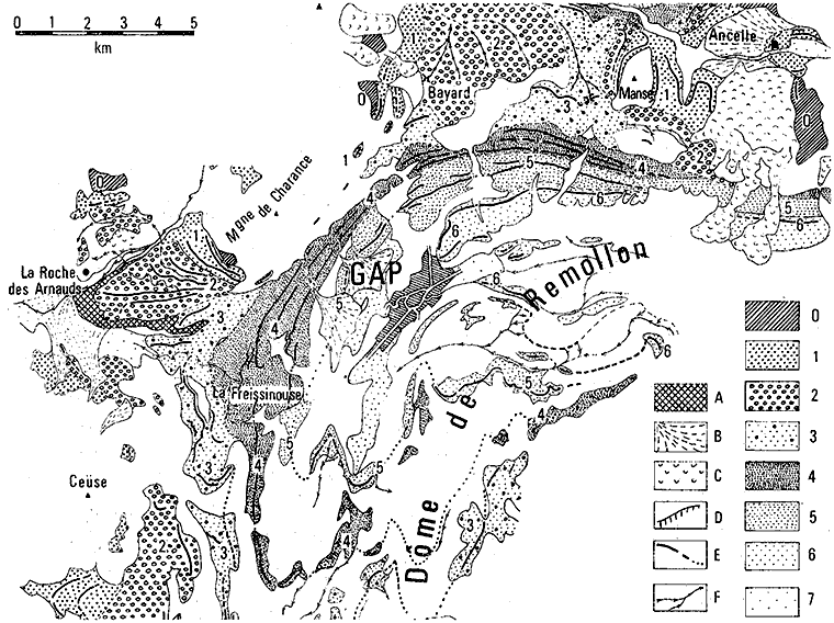 L'isolement de ces pointements du sous-sol rocheux, qui résulte la large extension de ces dépôts quaternaires, conduit à alimenter des incertitudes quant à leur situation structurale, en particulier en ce qui concerne leur absence de prolongement du côté nord comme du côté sud de la barre rocheuse de la limité Jurassique - Crétacé qui les constitue. Du côté sud la terminaison des affleurements tithonique est dû à un chevauchement de La Rochette qui a dû surélever ces couches et l'on doit attribuer leur absence plus à l'est à une érosion antérieure à la reprise de sédimentation nummulitique qui s'observe au sud d'Ancelle. Celle-ci devait donc encore aller s'accroissant en direction de l'Embrunais indépendament du fait que ces dépôts nummulitiques eux même y ont été supprimés avant l'arrivée des nappes d'origine interne qui caractérisent ce dernier domaine.