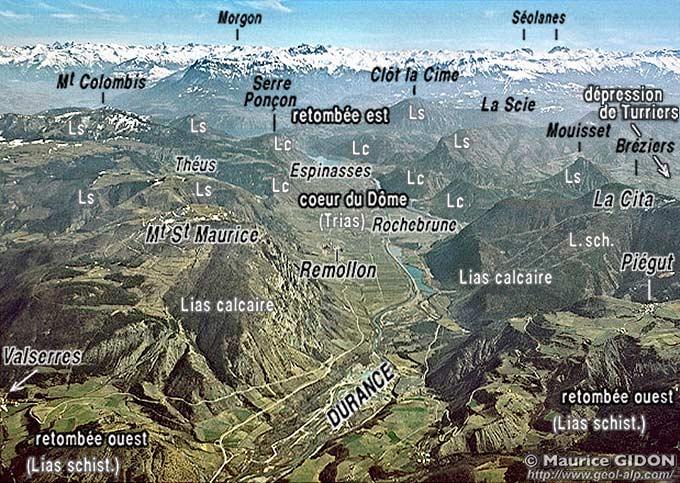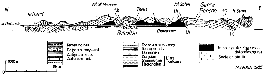 ![]() Coupe (W-E) du Dôme de Remollon, selon la gorge de la Durance |