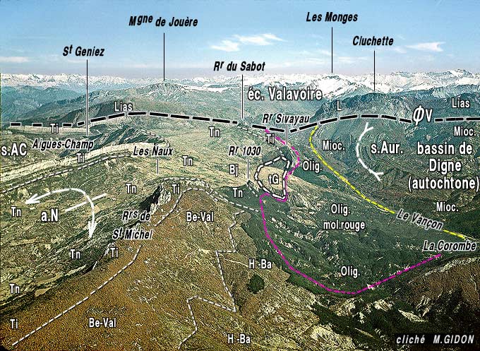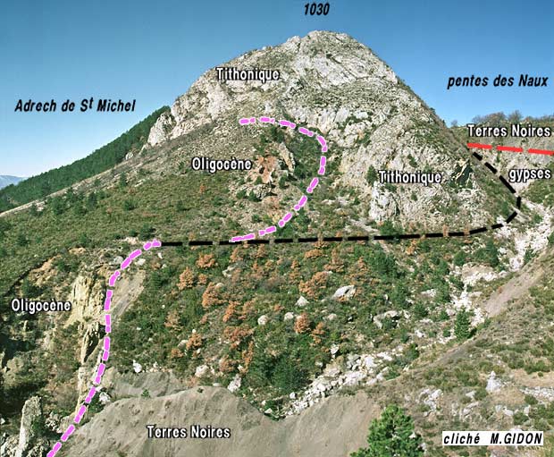 L'anticlinal des Naux apparaît donc comme un pli anté-oligocène qui a été réactivé par le plissement post -oligocène qui a rebroussé la marge septentrionale du bassin tertiaire de Digne.