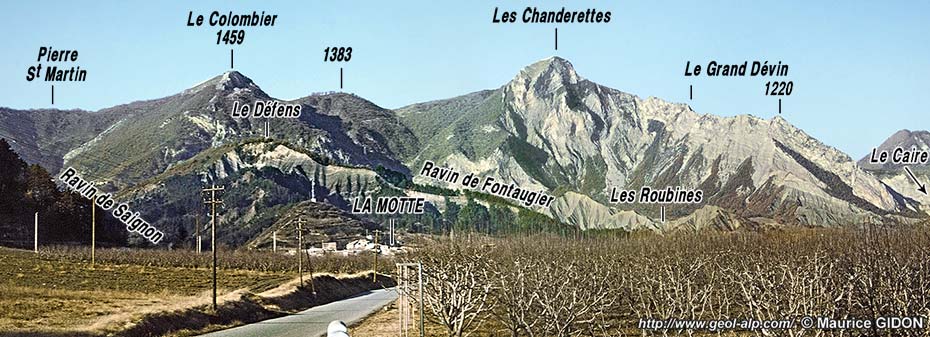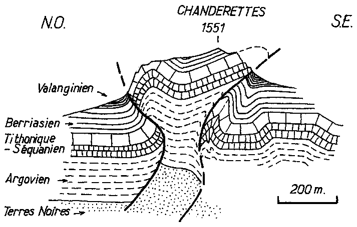 L'examen de l'anticlinal des Chanderettes peut se faire depuis les abords sud du bourg de La Motte, grâce à la coupe naturelle de ses abrupts méridionaux. Il montre que la disposition des couches y est compliquée de replis et de cassures, ce qui lui confère une forme en champignon.