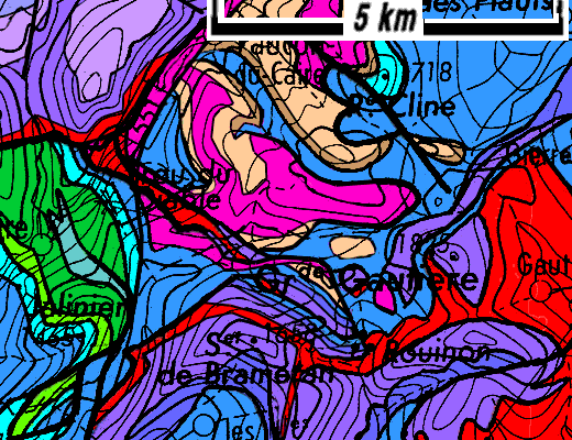 Carte géologique simplifiée des environs de la Grande Gautière et du haut vallon de Vermeil |