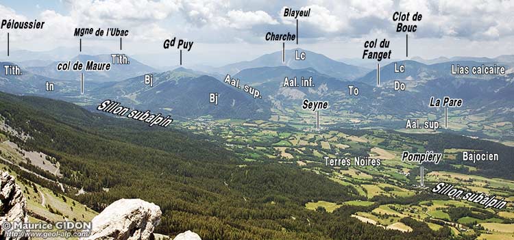 Ce sillon, qui se poursuit au sud du col du Maure par la vallée des sources de la vallée du Bès en amont du Vernet, longe le pied du puissant crêt des montagnes de Dormillouse et de La Blanche : comme ces dernières sont formées par la partie supérieure (du Tithonique au Nummulitique) de la succession stratigraphique "autochtone" (c'est-à-dire, en fait, de la nappe de Digne) on doit considérer ce sillon comme la branche la plus méridionale du sillon subalpin*..