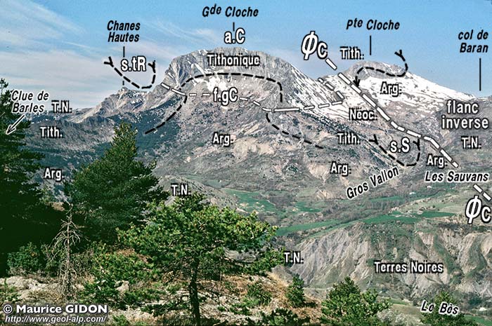 vers le sud, dont le Tithonique du flanc nord est plus largement conservé à la Roche Folle (versant ouest du col de Baran). Ce flanc du pli se rattache, par continuité stratigraphique, à la série