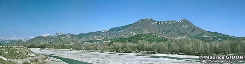 - Aiglun, vu ici selon son axe (la voûte du pli plonge vers