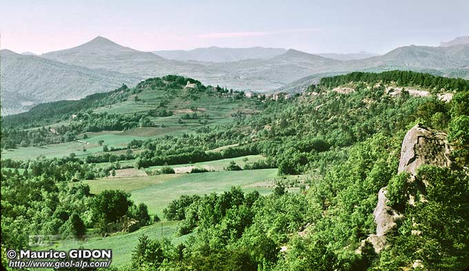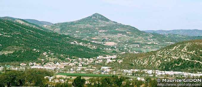 vu de l'est, depuis les Hôtelleries (RN 85 au sud de Digne).