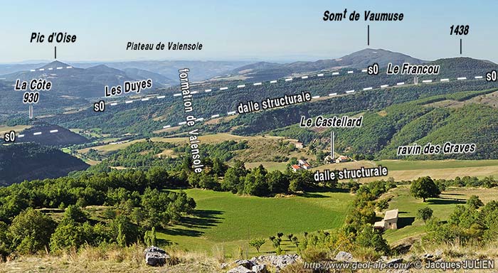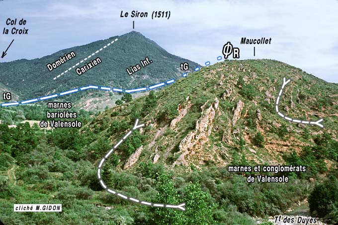 Duyes vers la butte des Ardarets et se poursuit en rive gauche du torrent des Duyes par celle de Maucollet. On a vu ci-dessus que, sur son revers oriental, les couches de la formation de Valensole