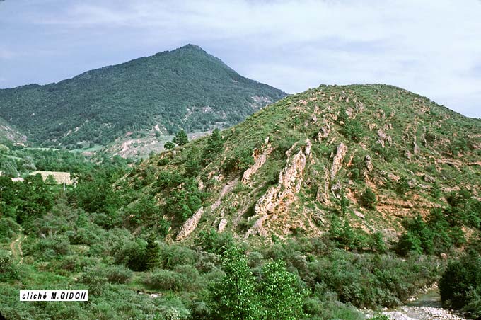 Ces affleurements supportent d'autre part, un peu plus au NE, dans l'échine qui s'élève depuis les ruines de Mélan, une succession liasique, qui en est au contraire disposée à l'endroit et qui est identique à celle des escarpements de la Montagne
