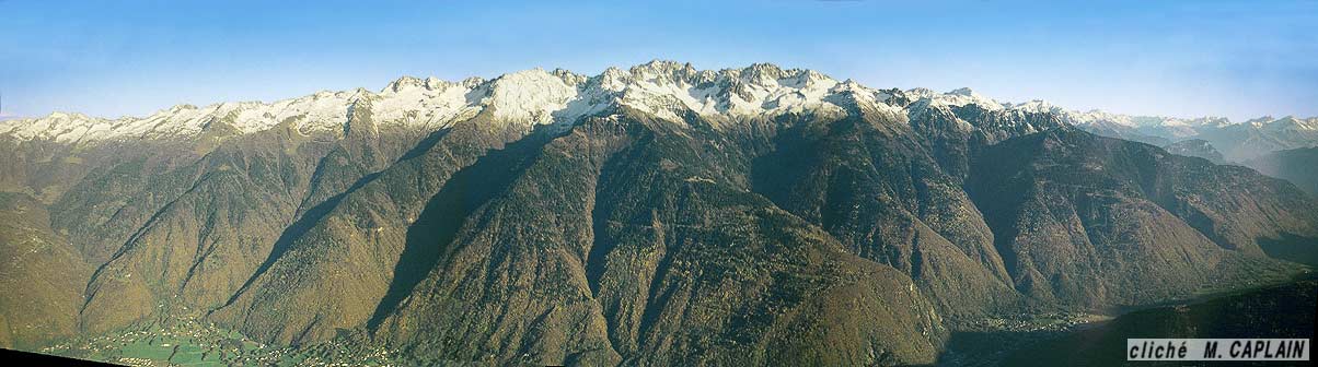 La rive droite de la vallée de l'Arc au débouché de la vallée du torrent de Basmont, vue d'avion depuis les abords du Mont Bellacha.