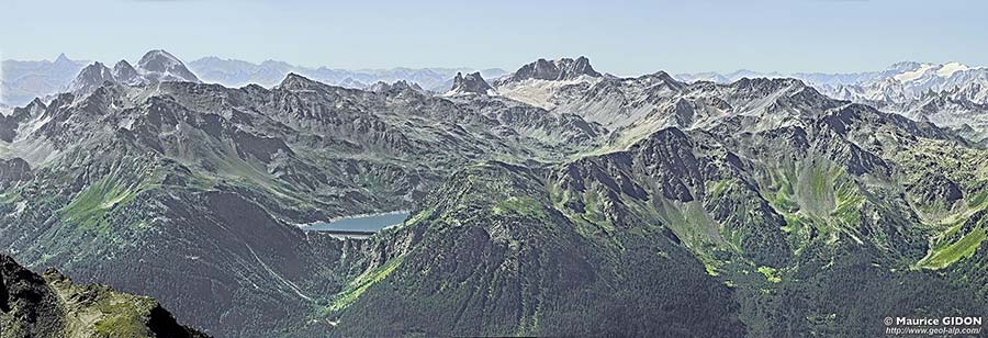 vu du nord depuis la Cime de Caron (rive droite de la Maurienne).